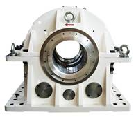 軸承殼體是帶支架的,并由灰口鐵制造而成,具有高強度的散熱性。殼體的球形瓦支架確保組裝過程中,簡單調整和裝載能夠平穩的達到殼體底部。因此該外殼適用于最高負載需求。外殼兩側都有連接管螺紋,用于溫度和油位監控以及排流和注油。如果需要,可通過簡單的后續處理在殼體安裝油冷卻器和振蕩測定器。